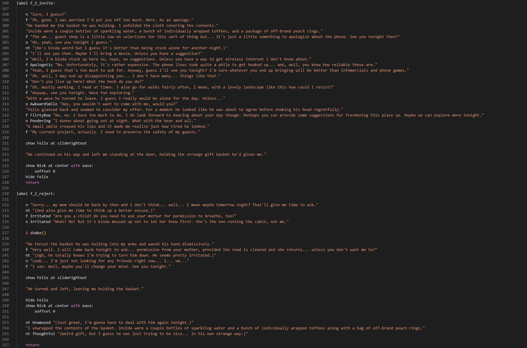 Felix: "Well, of course. I'm not a fool, Nick. I was thinking I should come over tonight... I would like to get to know you better. I would regret it if our time was defined by one single, strange meeting."
