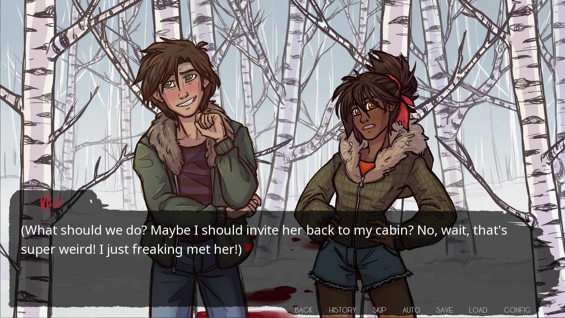 Nick: (What should we do? Maybe I should invite her back to my cabin? No, wait, that's super weird! I just freaking met her!)