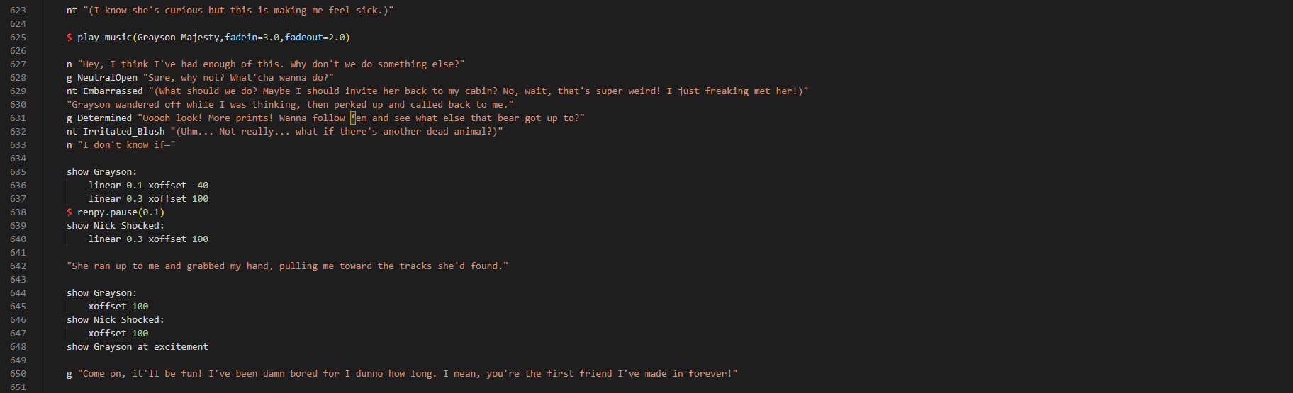 Grayson: "And man, that sounds like somethin' fun! A real live bear, huh? He ate that critter pretty damn good too didn't he?"