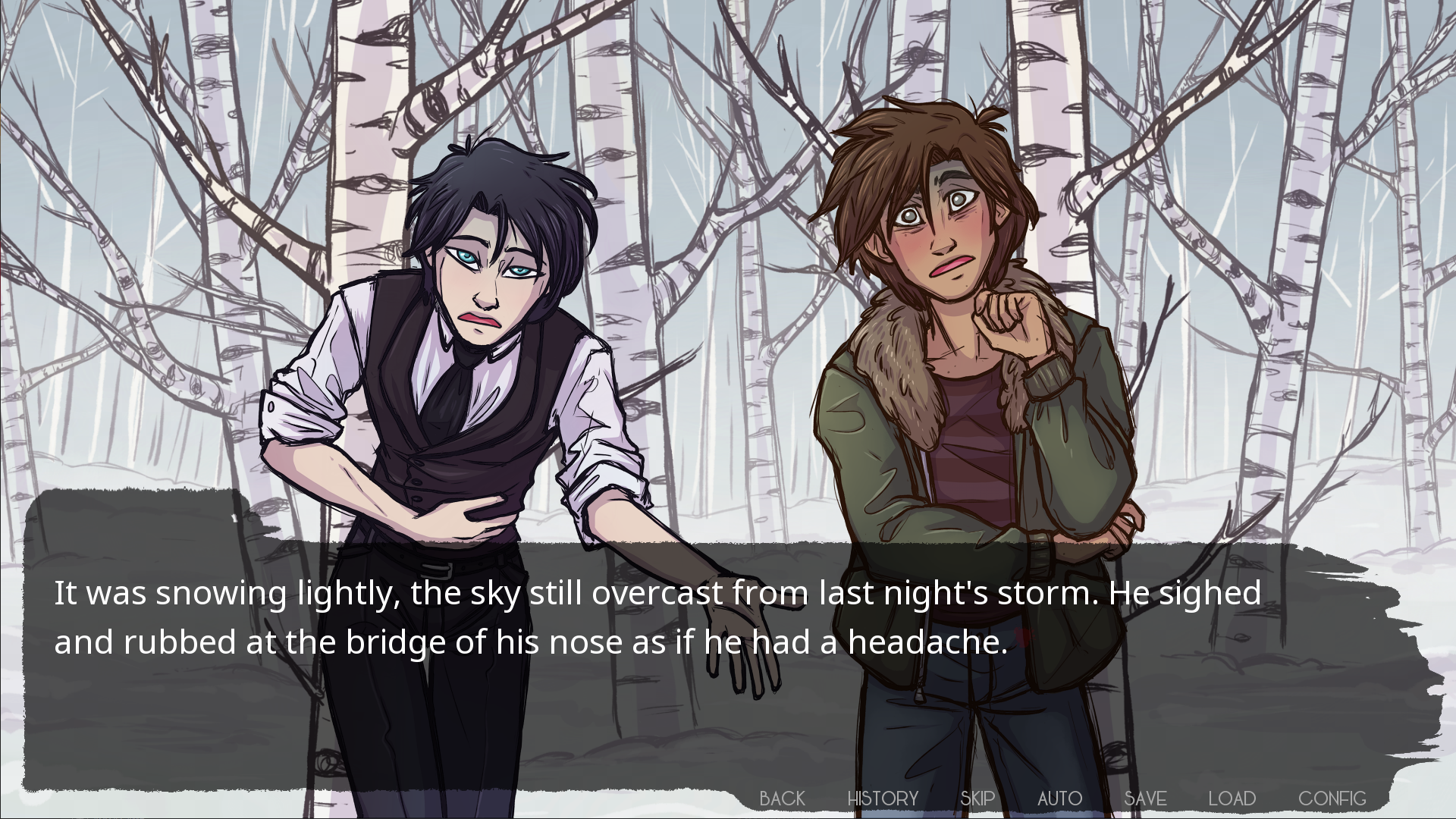 Nick: (The trees are actually pretty beautiful out here, the bark is almost as white as the snow. It kinda looks like some sort of fantasy show or something.)