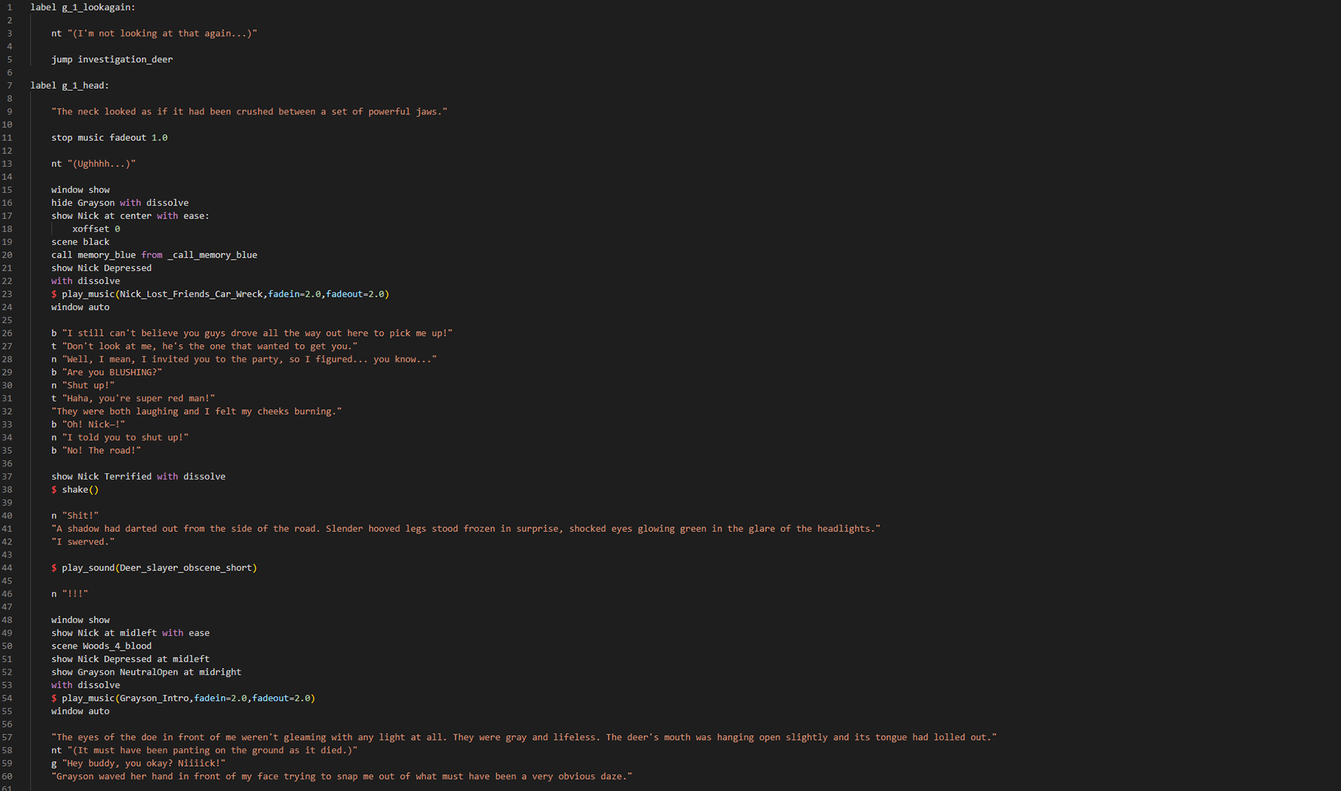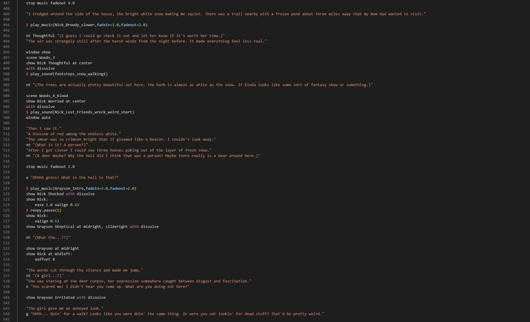 Nick: "What the...? No! I was NOT trying to find a dead deer..."